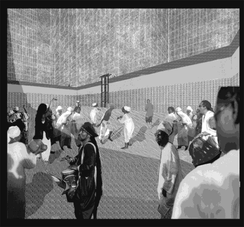 The design of the Dikenga Pavillion combines Central African cosmology and West African symbology into a form that celebrates and creates space for community rest and ritual gathering. The gabion enclosure presents an opportunity for participatory art, youth skill building and a community crafted gravestone that carries on a life of its own.